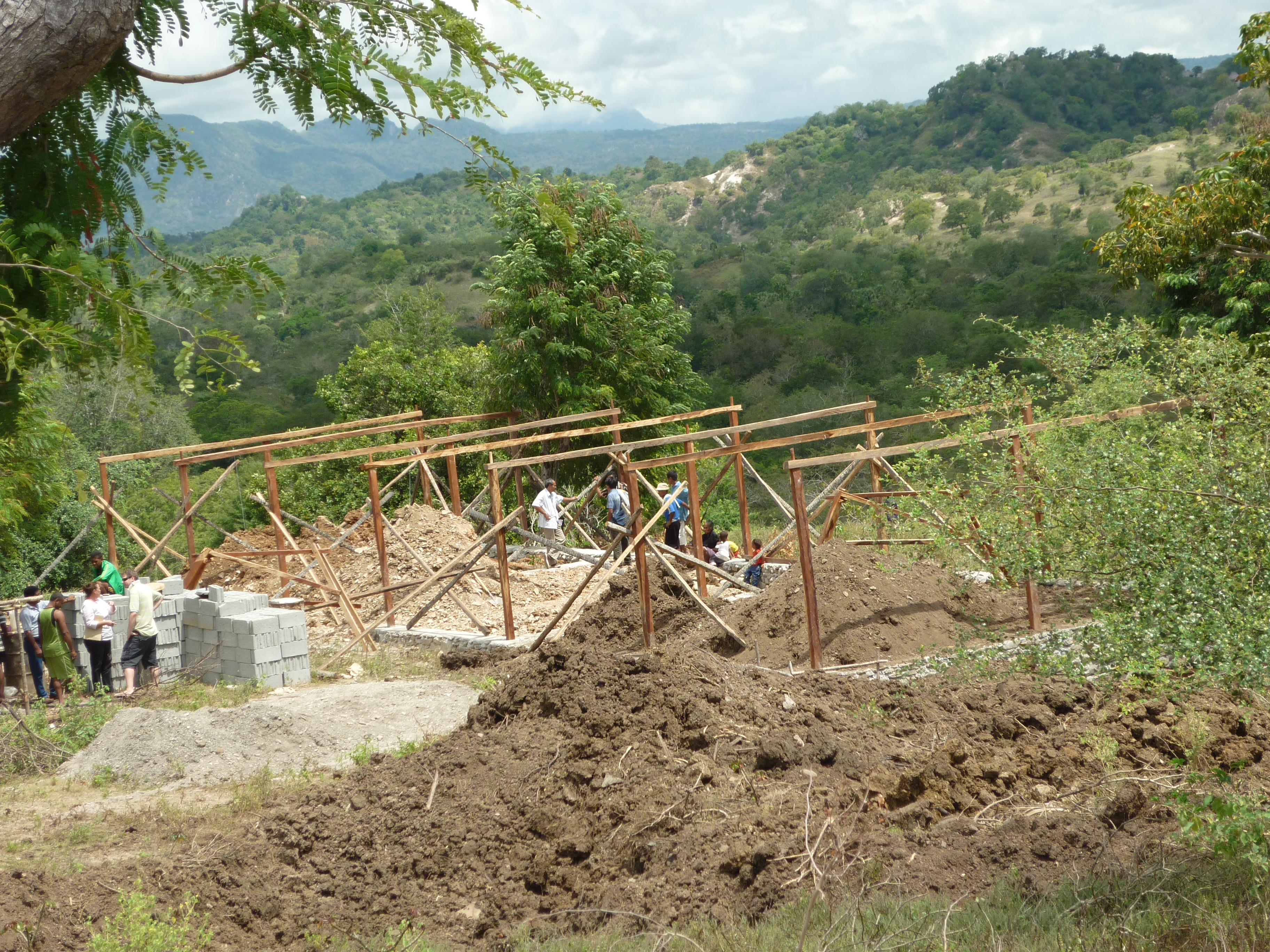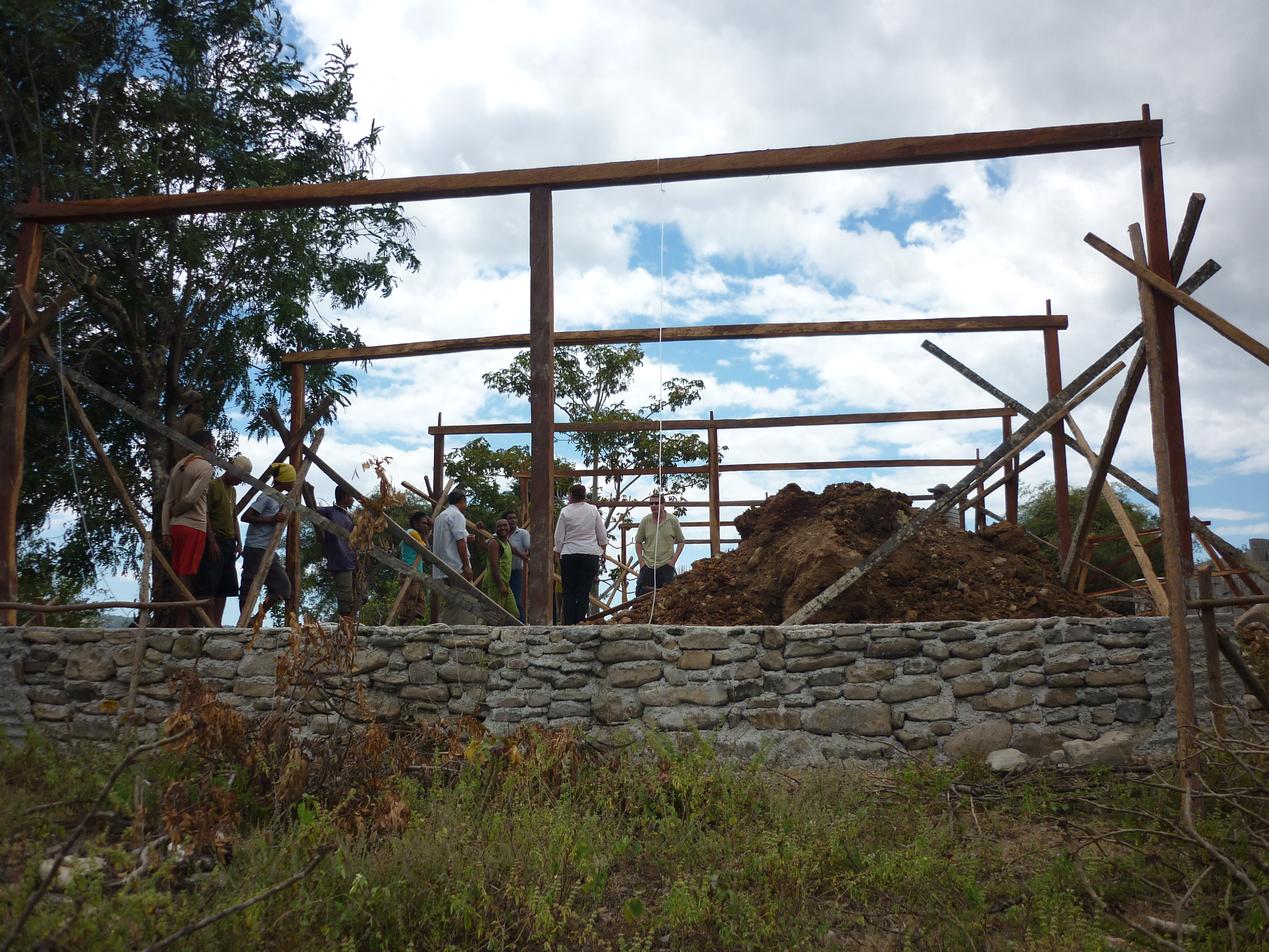 Everyone was really pleased with the progress. Agostinho is happy with the quality of the work – the foundations are strong and deep and they are using good quality wood (not easy to find in Timor). Some villagers are employed by the builder – others are helping voluntarily to keep the road into the village accessible for trucks.